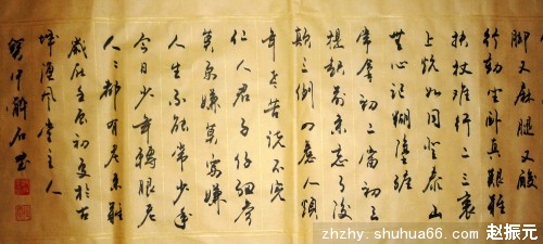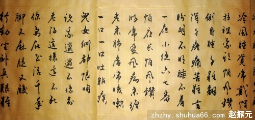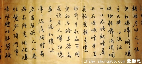 《老来难》相传为唐·杜牧775年所作。语言通俗,描述细腻,道尽老年人的生活特点和万般苦痛,劝人要孝敬老人,尊重老人,并委婉告诉人们,人人都要经过老年这一阶段,孝敬老人也是尊重自己。过去,在我们老家陕西大荔,有人用这首《老来难》写出一个老人拄杖的画像,形象逼真,农村人贴在屋里,用来提醒人们的孝敬心,久传不衰。今天我用行草书写成手卷形式,装裱后宽40厘米,长350厘米。