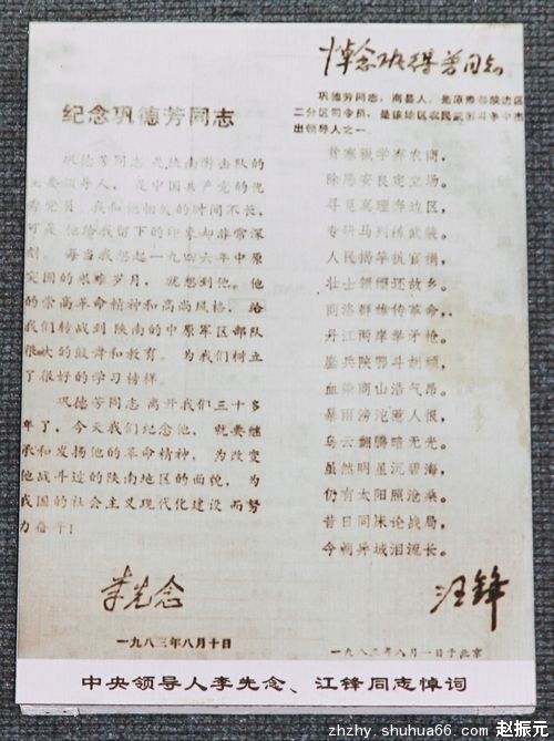 由于烈士陵园管理所所长陈志良外出学习,安排副所长接待了我们。张女士还特意联系到巩德芳叔叔当年的警卫员曹全泰老先生。我们一行首先来到接待室,回忆畅谈父辈的光荣历史。我分别向烈士陵园赠送“浩气常存——纪念巩德芳叔叔逝世65周年”书法作品,向张女士和曹老先生赠送了书法作品,以表纪念和感谢。然后参观了烈士纪念馆,向巩德芳、巩德胜叔叔敬献了花篮,将岳父、岳母的遗像摆放在叔叔墓前,让他们三弟兄“团圆”,向叔叔们三鞠躬,完成了岳父的遗愿。
