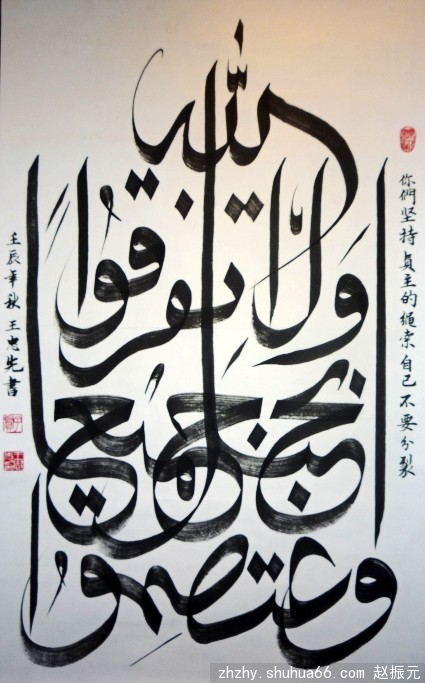 今天发表“喜迎十八大甘肃穆斯林美术书法摄影艺术展”作品之二,有几幅是用阿拉伯语书写的装饰性很强,也很精细,很耐人寻味。代表着甘肃穆斯林美术书法艺术的最高水平。请大家欣赏。