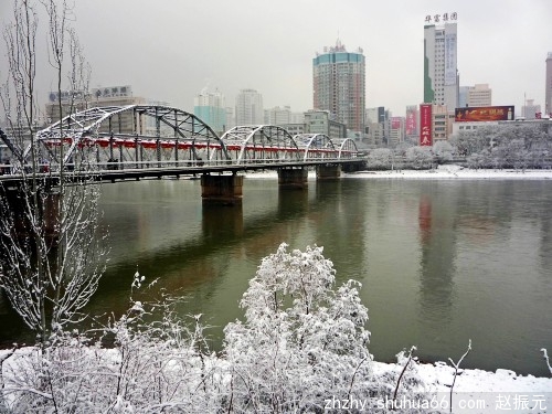自去年入冬以来,兰州还没有下过这么大的雪。这对长期干旱的陇原大地来说,真是“春水贵如油”!我是个摄影爱好者,这个好机会一定要抓住。8点半,我带上相机,先到东方红广场拍了几张,又乘车来到白塔山,整个兰州市银装素裹,景色美如画。我上到半山腰,然后由上向下,经过黄河第一桥——中山桥,沿黄河向东至水车博览园,再到盆景园,然后返回家中。将近两个小时,路不好走,也很滑,鞋和裤腿都湿了,但心里很高兴。因为这样的机会在兰州也很少碰到。现上传部分照片,请欣赏。