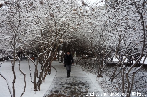 昨天是24节气中的春水,清晨我准备出去锻炼,一下楼,满地皆白,晚上一场雪,使大地披上了银装。雪还在下着,地面有些滑,只好返回家中。