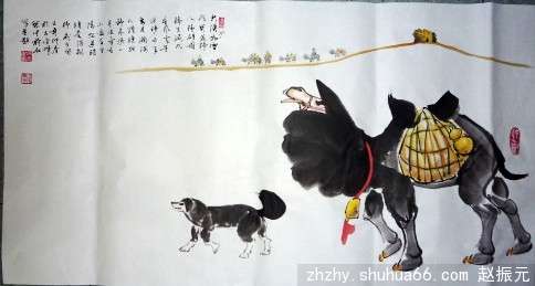 赵老师的作品,技巧已达到了炉火纯青地步!我想提一点个人观点,别无它意,但对作品爱不释手。我没去过茫茫戈壁与大漠和草原,只冯想象力乱说一通。画面整个空间结构调整一下,即前、中、远景搭配,题字落款后。能让读者领略辽阔沙漠天然景观。衬托骆驼象征着吉祥,它勤劳善良,坚忍不拔,一步一个脚印,长期跋涉在茫茫戈壁与大漠之中,任劳任怨,默默奉献,永远甘当无名英雄。让读者浮想联翩,为之喝彩、呐喊助威!