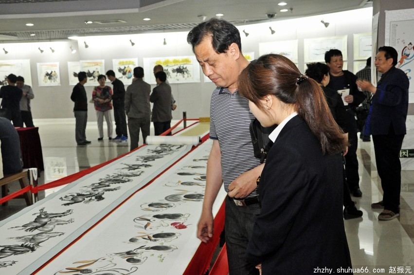 这次展出书画作品69幅,两幅长卷(百骏图和百图献瑞图)和一幅手卷,共72幅,大部分作品都是春节后创作的新作。今发表部分展出实况照片,请欣赏!