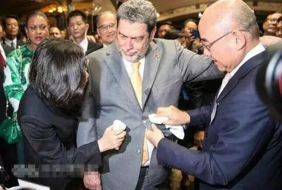 据台媒报道,10月10日晚台湾举行“台湾有你真好”酒会,蔡英文邀圣文森特和格林纳丁斯总理冈萨尔维斯等(两个超级小的鼻屎国),冈萨尔维斯品尝小笼包时不小心弄脏了西装,蔡英文赶紧上前,俯身弯腰帮忙擦拭。这张蔡英文的照片在各大社交平台流传几天,引发的热议却是一波接一波。