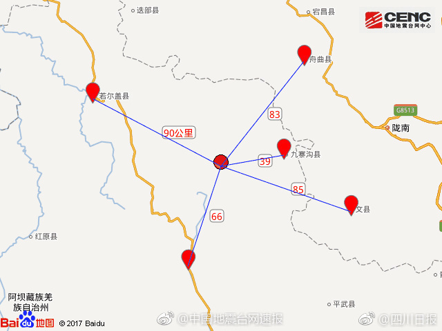 4,地震局专家判断,此次地震发生在岷江断裂带与东昆仑断裂带东部交汇地带。