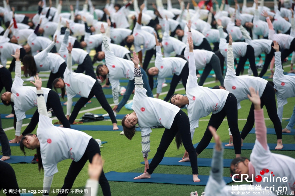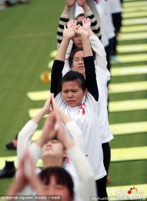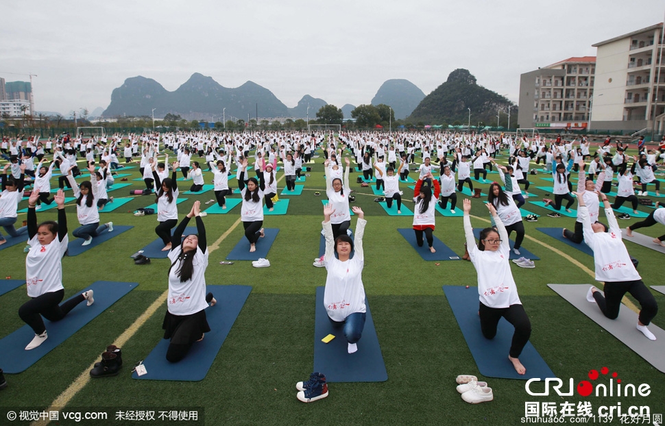 桂林千人集体练瑜伽 迎“世界艾滋病日”(组图)