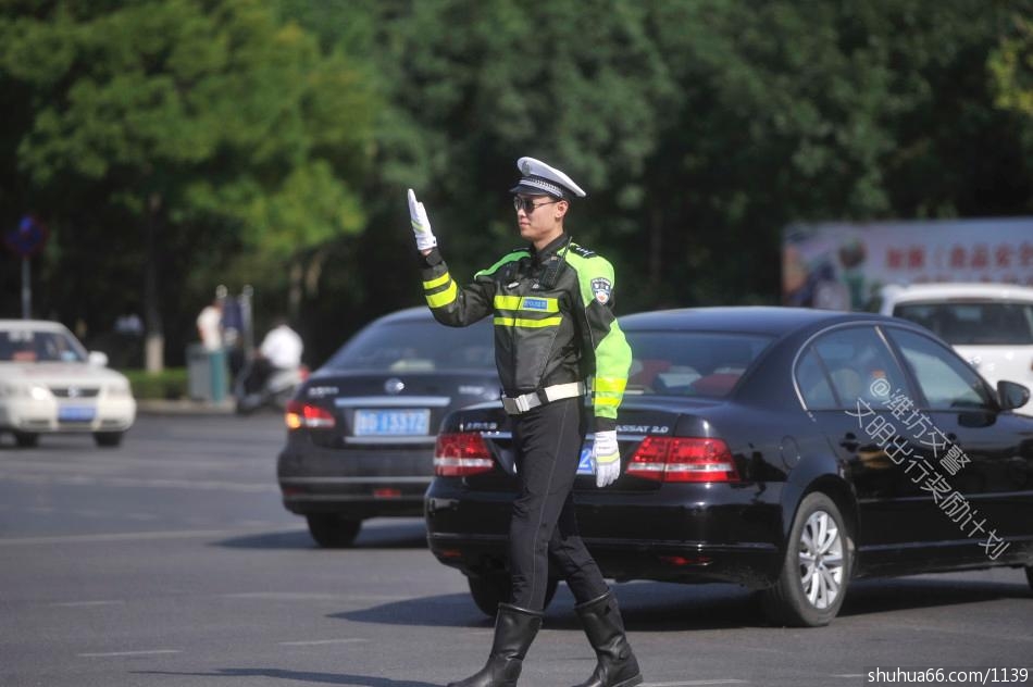 潍坊交警执勤中。