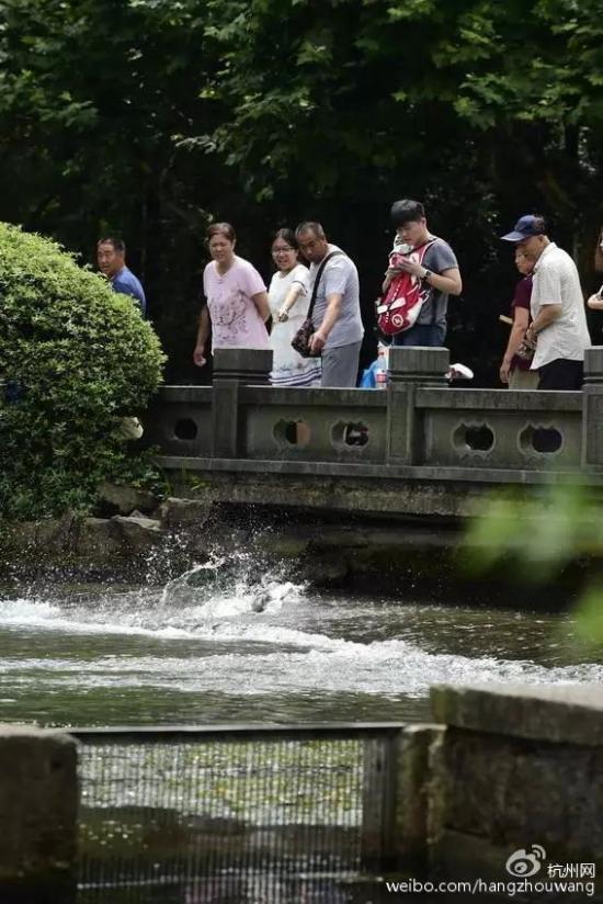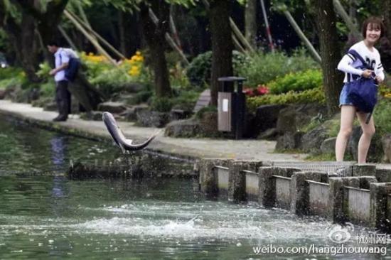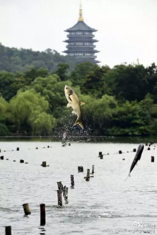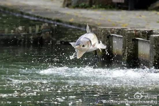 鲤鱼跃龙门以往更多只是在书本中见到,而近日在杭州西湖,如此神奇的一幕却在现实中发生,引来游人驻足。