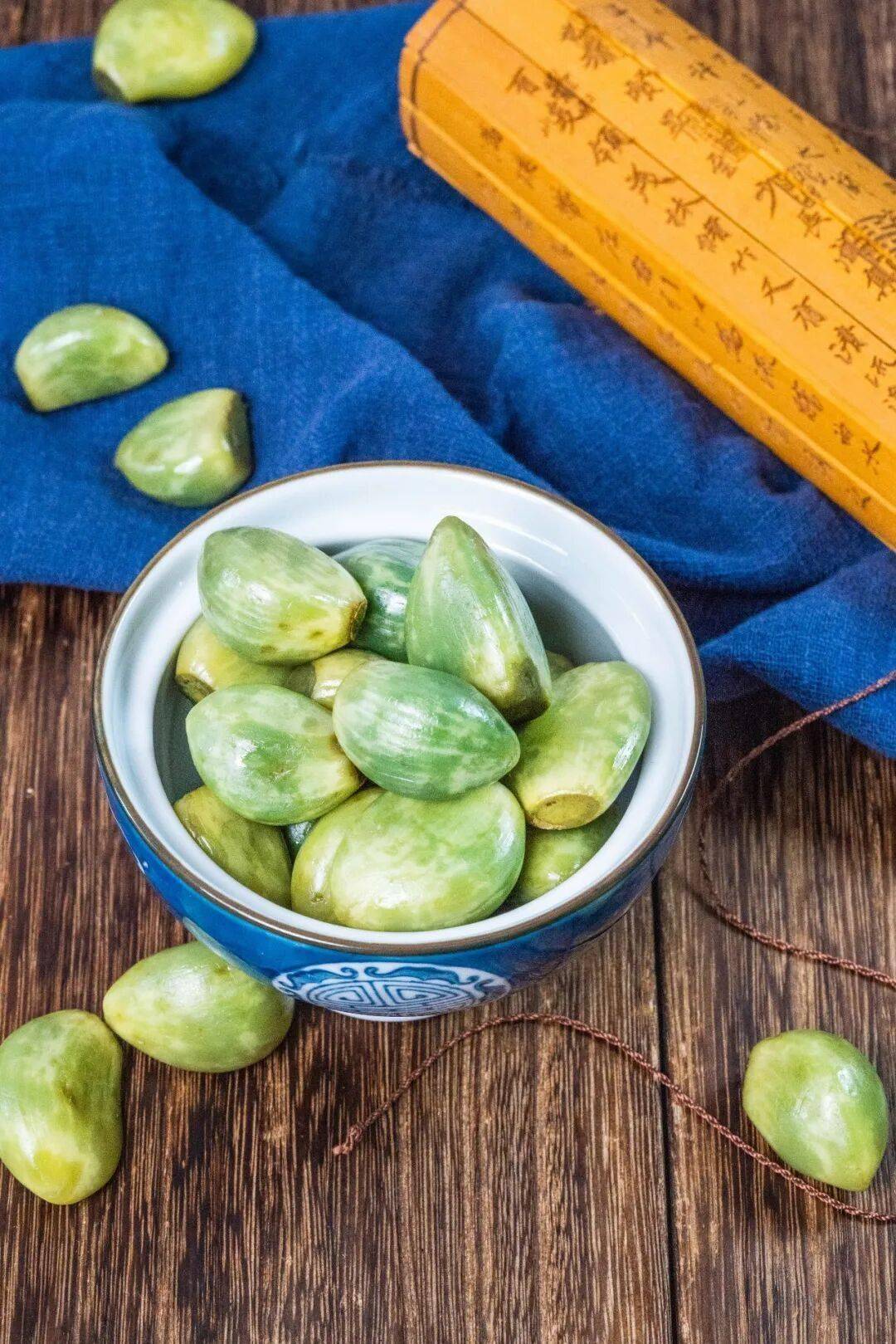 华北大部分地区在腊月初八这天有用醋泡蒜的习俗,叫“腊八蒜”。腊八十几天后,正值春节,由于醋的浸泡,蒜整体呈碧绿,非常好看,而醋也具有了蒜的辣味。