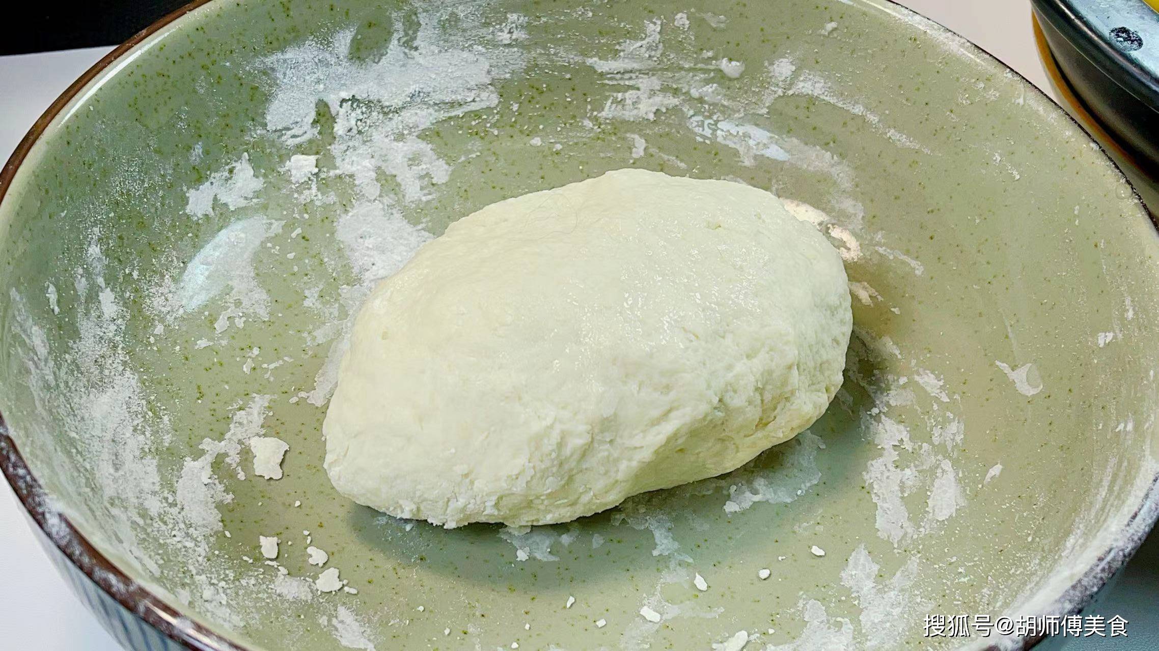 第四步:将面粉分成2半,一半用滚沸的开水调制,一半用冷水调制,将它们都搅拌好后混合在一起,然后把它们揉成光滑的面团后醒面半小时,这样可以使面变得更松软。
