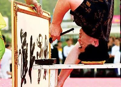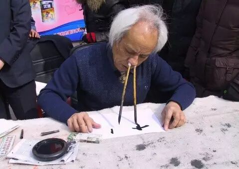 只要看到有镜头在,或正襟危坐、或玉树临风、或仙风道骨状等。表演丰富,融合气功、太极、街舞等成份,或斗笔乱飞、墨花四溅,或地摊杂技如双钩书、空心体、左手书、反书倒书、嘴巴、脚丫执笔…