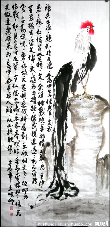 焦墨,远古就用之,彩陶用焦墨,隋唐壁画用焦墨,只是宋以后在宣纸上作画才加水调试,以求更丰富的渗化效果。焦墨,使得画面乌亮、沉实、厚重。给人以画理玄妙,机理深邃只感觉。然焦墨在宣纸上缺乏变化,用不好也会使得画面僵硬、死板,只有在墨里添加不同的水分,借助生宣的渗化的功能,画面才会出现神奇的变化效果。由于加水的不同,墨的色阶层次丰富多彩,画面变化也丰富无穷,效果极佳。所以,我们在做一幅画时,要根据作品的内容需要,不断地调整墨的浓淡,既要用焦墨,也要用色界不同的淡墨,以使画面韵味无穷。