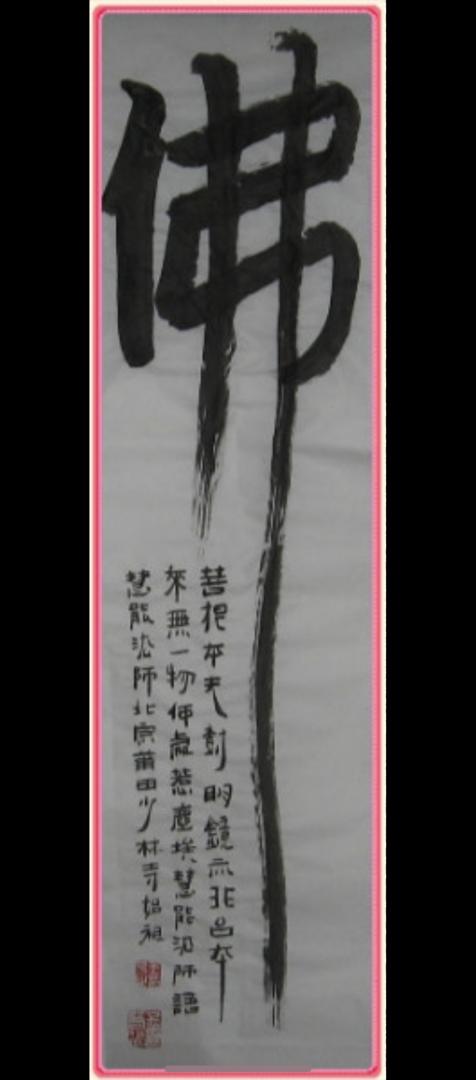 看华剑兄写榜书——佛字,忽然想起很久很久很久以前,我给一个信佛的人写过一个榜书佛,翻了好久图片库,还好还真有(以前参加大赛有很多获奖作品都找不到了,可能是没存?有可能是换电脑、手机弄没了,有点可惜,不过没关系。以前参加展览和大赛我还开过玩笑,随便写一幅就能获奖,还是非常幸运的。有网友开玩笑说,你不会在评选组有人吧?啊?不同的大赛或者展览,我都有人?太奇妙了。)。