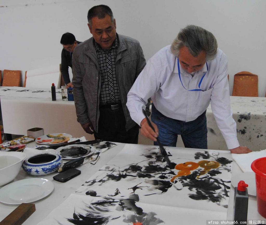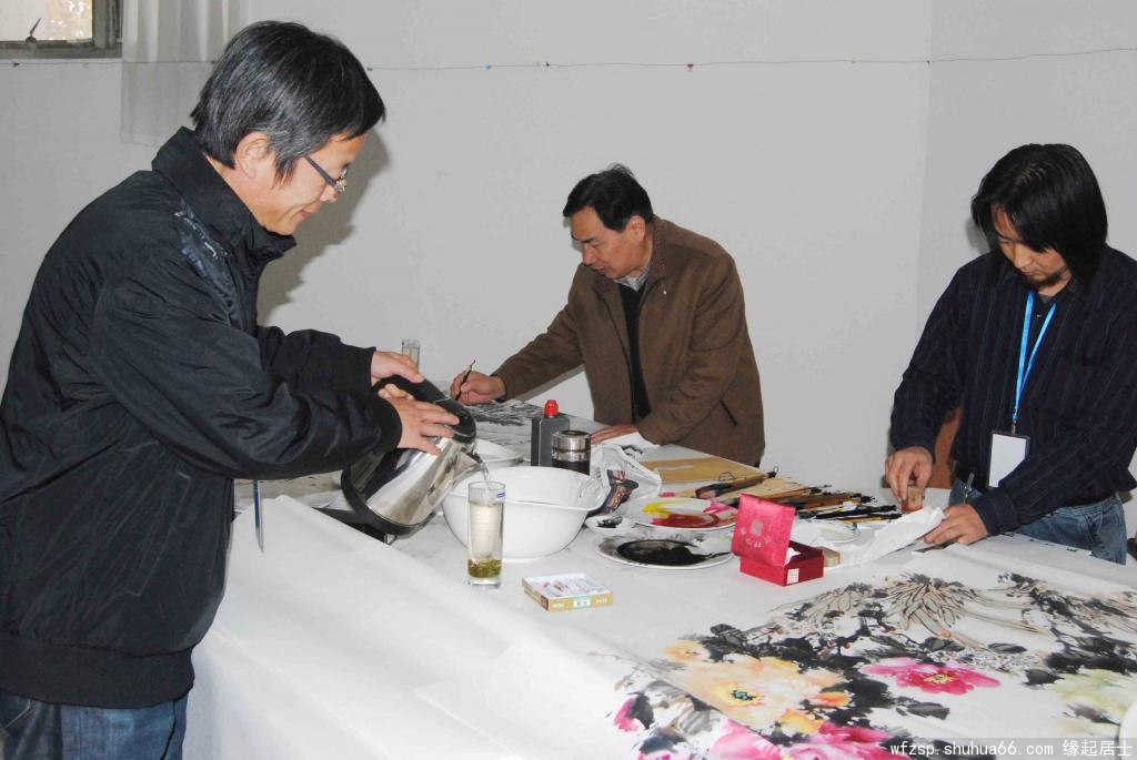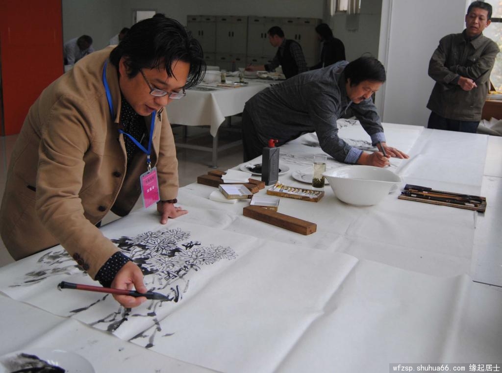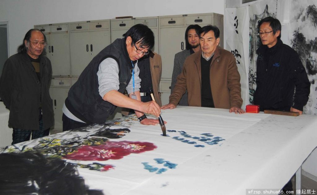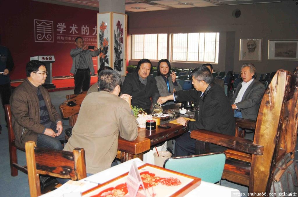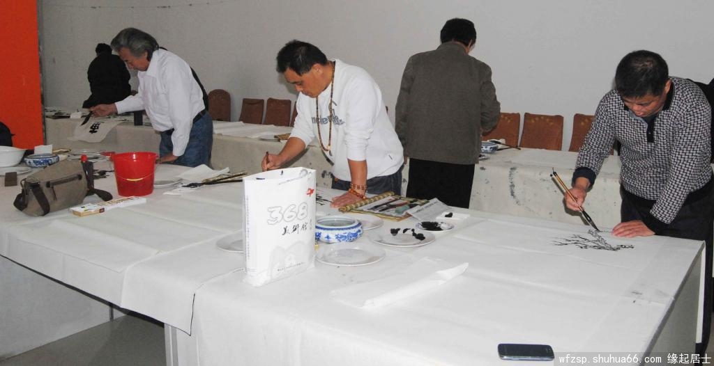 “368美术馆书画名家作品陈列展”开展之际,得到了潍坊市美术家协会、潍坊电视台、《潍坊日报书画·艺术专刊》、潍坊华城茶庄及众多新闻媒体的大力支持,为答谢各界对本次画展的大力支持,368美术馆于2014年11月8日邀请由潍坊市美术家协会副主席兼秘书长王居明先生、常务副秘书长孟永胜先生、副秘书长王伟先生、北海书画院院长庄悦江先生、郭味蕖美术馆常务副馆长韩子夫先生等带队,组织了近20人的大型书画笔会,留下了近40幅书画精品。