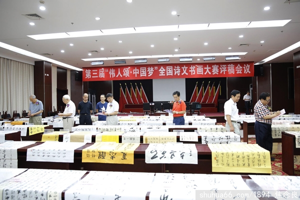 为纪念陈云同志诞辰110周年,由中国硬笔书法协会对外交流委员会、中国诗书画家网、羲之书画报·诗书画家等单位举办的第三届“伟人颂·中国梦”全国诗文书画大赛征稿已结束,参赛有效作品7167件、评稿会议7月13日在京举行。国家文化部原副部长、中国文联党组副书记、副主席高运甲;中国书法家协会原党组成员、秘书长、中国书法家协会中央国家机关分会顾问张虎;中央国家机关书法家协会副主席、解放军审计署副审计长、解放军少将赵天民;中国书法艺术研究院副院长、中国书法艺术家协会副主席、中国诗书画协会名誉会长米南阳;中国美术出版总社副编审、中国书法家协会理事、北京市书法家协会原副主席谷谿;中国书法家协会理事、中国书法家协会原书法培训中心主任、中国书法家协会原展览部副主任张荣生;中国硬笔书法协会对外交流委员会秘书长、中国诗书画家网总编辑、《羲之书画报》社副总编辑邵建国等领导专家作为评委出席了评稿会议。