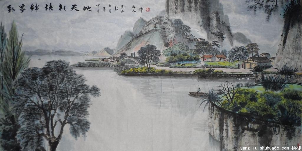 杨柳山水画《彩墨锦绣新天地》业已完稿,晒晒看!