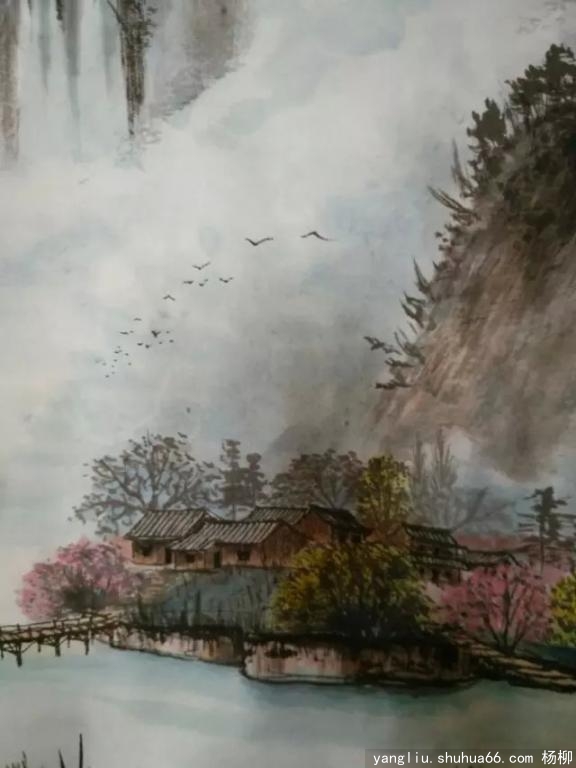 四尺竖式山水画新作《桃花村外漫春色》制作完成,权且不知花落谁家。分解局部欣赏。