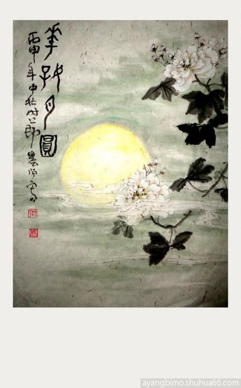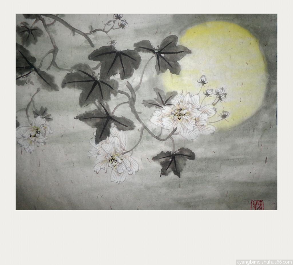 ] 学画芙蓉花系列------花好月圆两幅