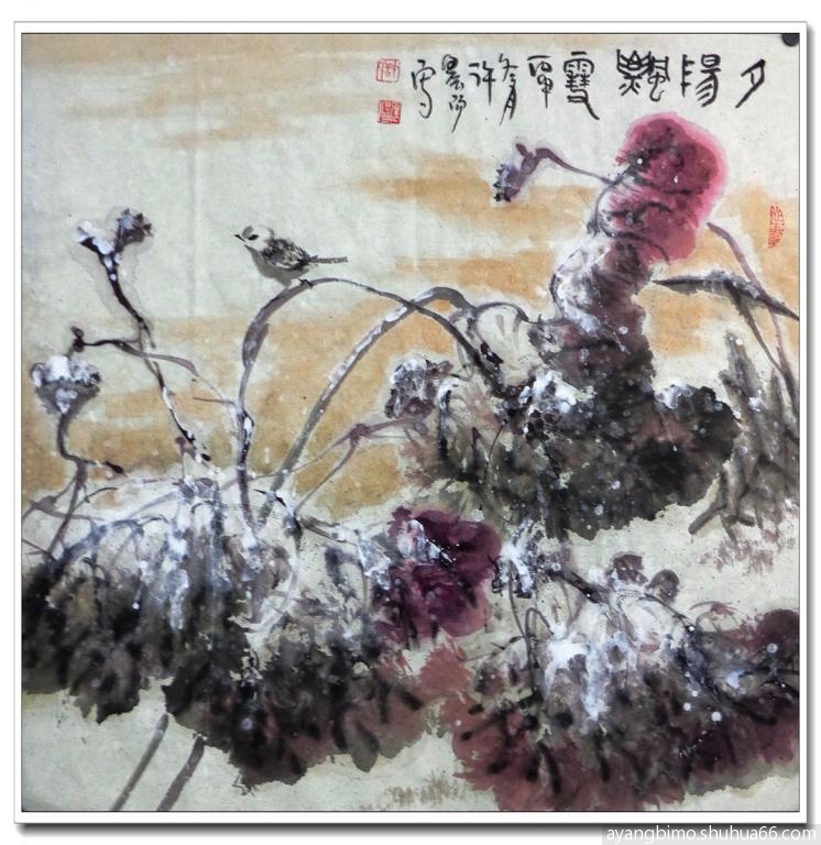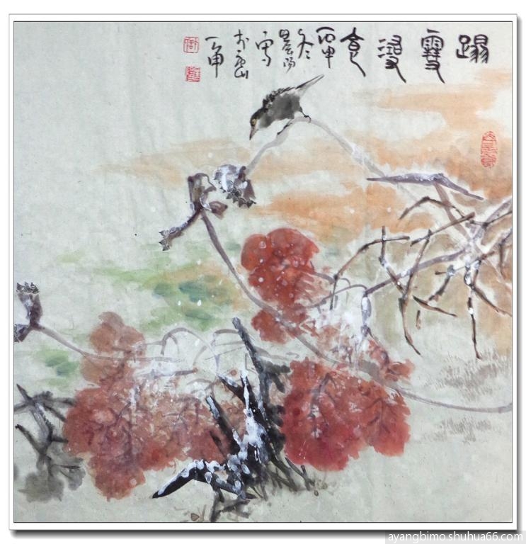 ] 早课涂鸦雪荷----踏雪寻食两幅