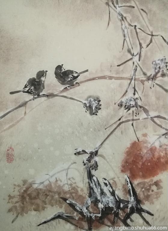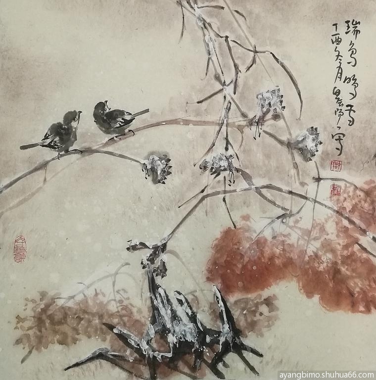 ] 早课学画雪荷~~~瑞鸟鸣雪