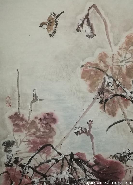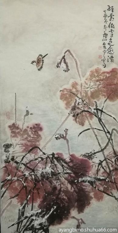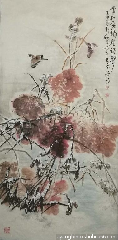 ] 学画四尺整张雪荷两幅
