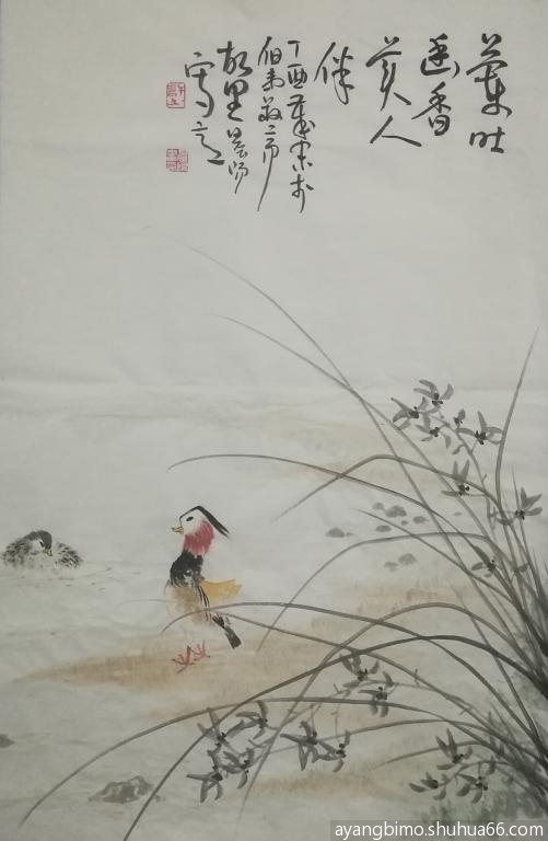 ] 学画兰花与鸳鸯~~~兰吐幽香美人伴
