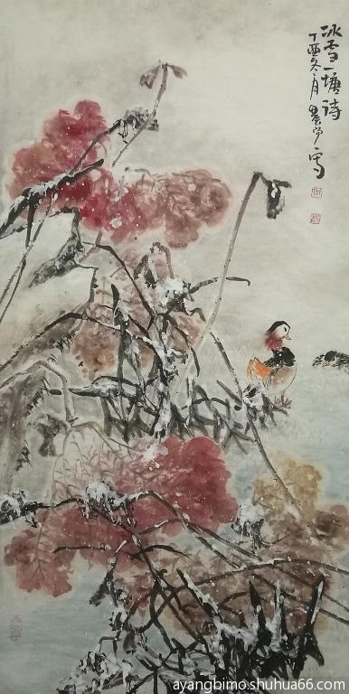 ] 学画雪荷鸳鸯