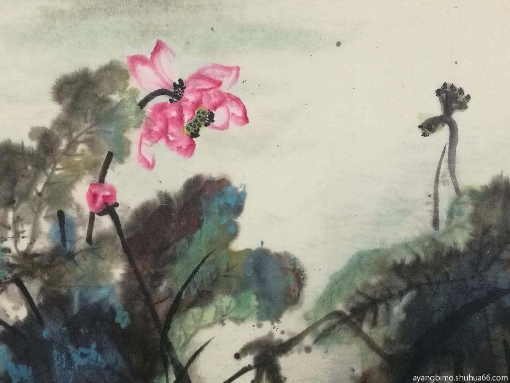 ] 学画泼彩荷花两张