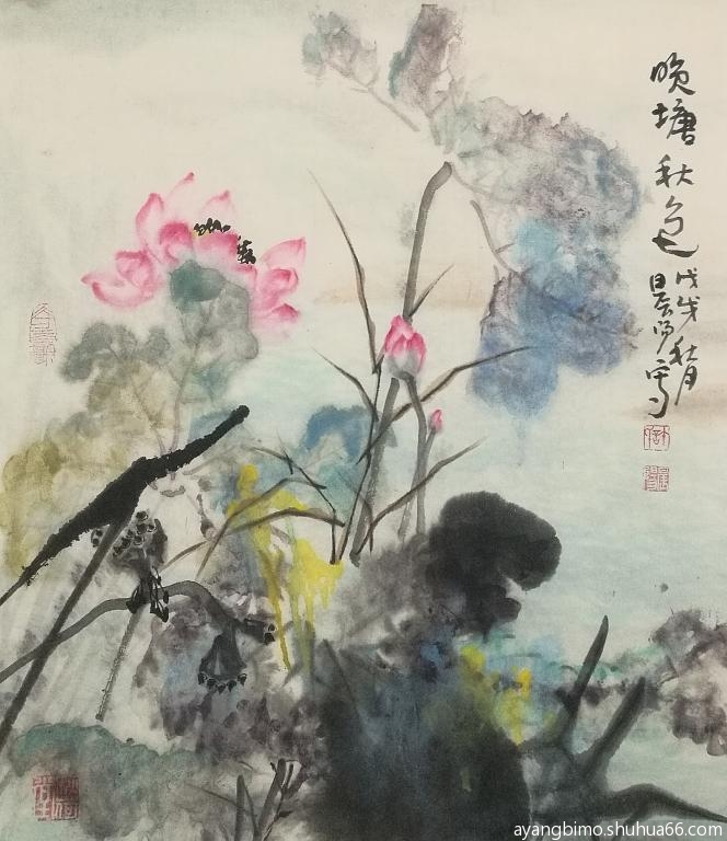 ] 学画泼彩荷花