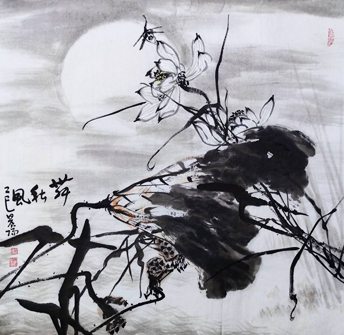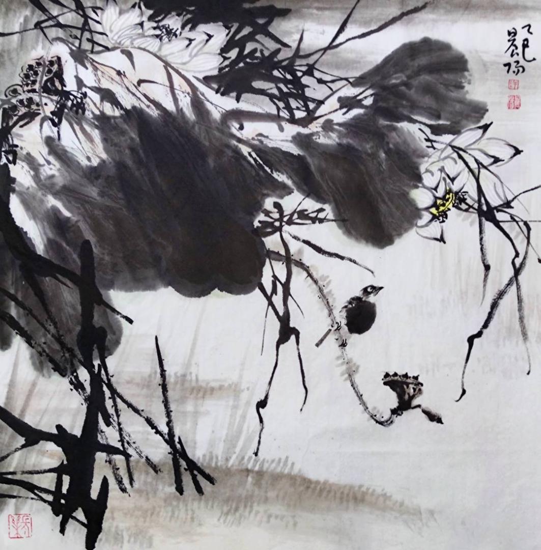 许晨阳国画、国画荷花