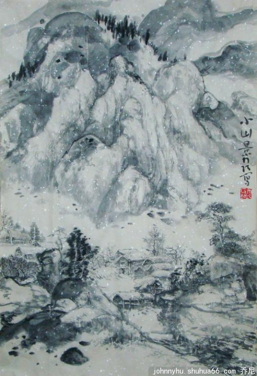 ] 国画——小山村景
