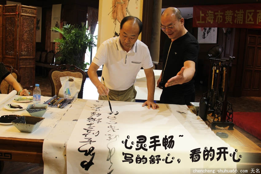 画案一字摆开,活动已近尾声,老师有的收了工,有的在为作品做最后的补缀,有的忙着合影留念。