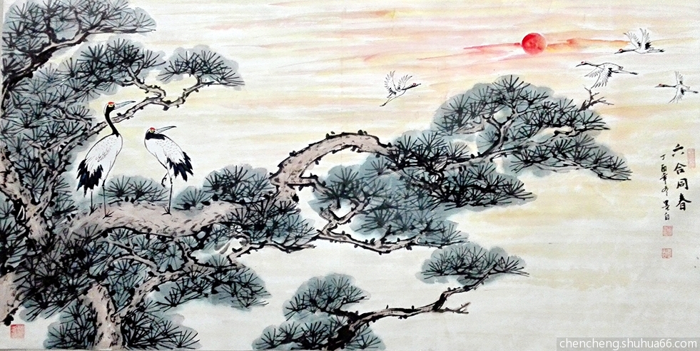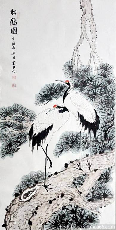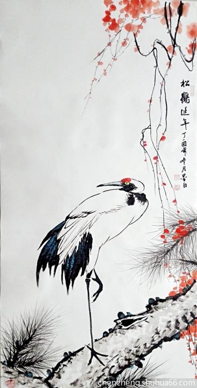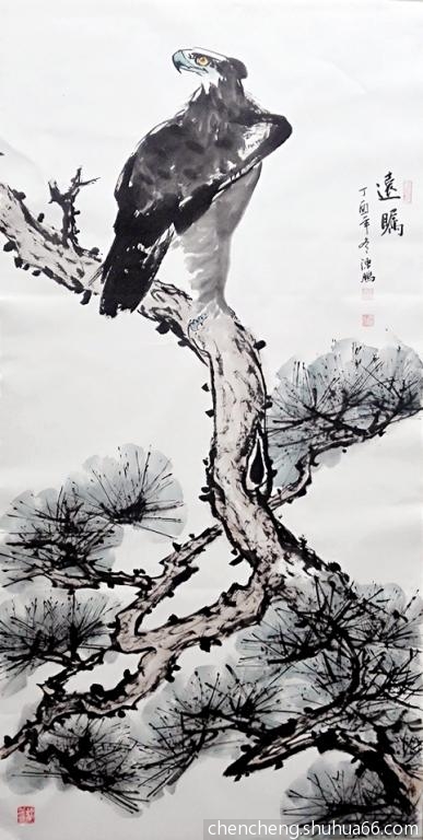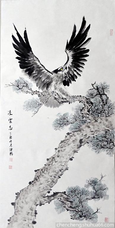 丁酉冬月,陈鹏花鸟新作松鹤、松鹰系列之二