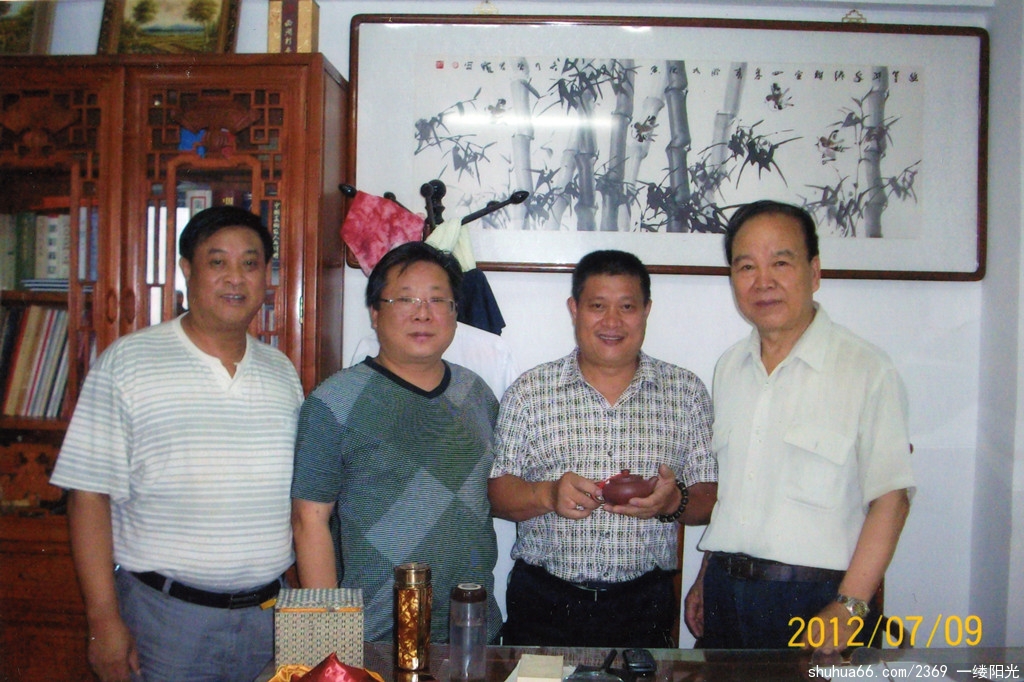 左起:左建华、吴一天、郑斌、微雕大师沈耕华