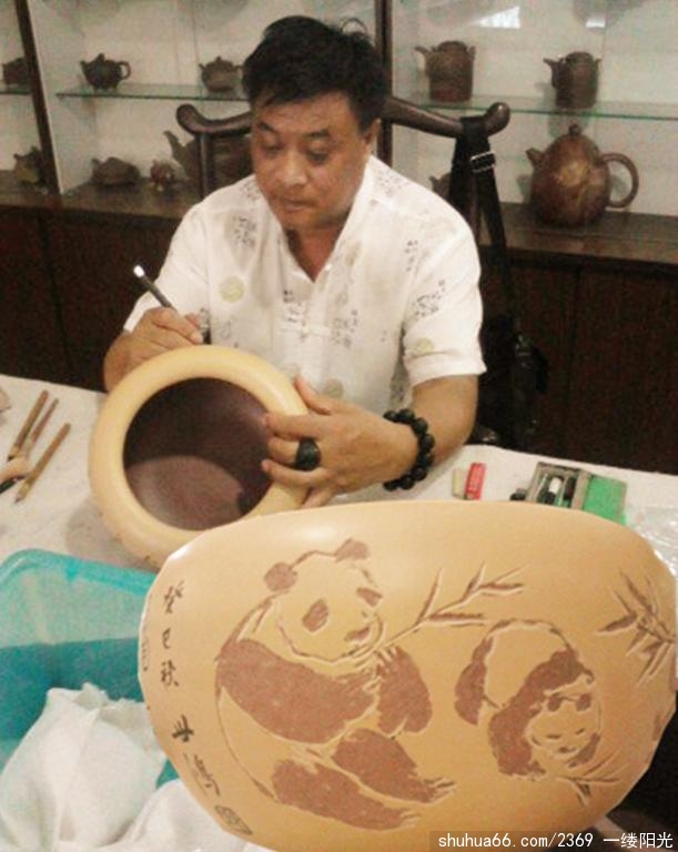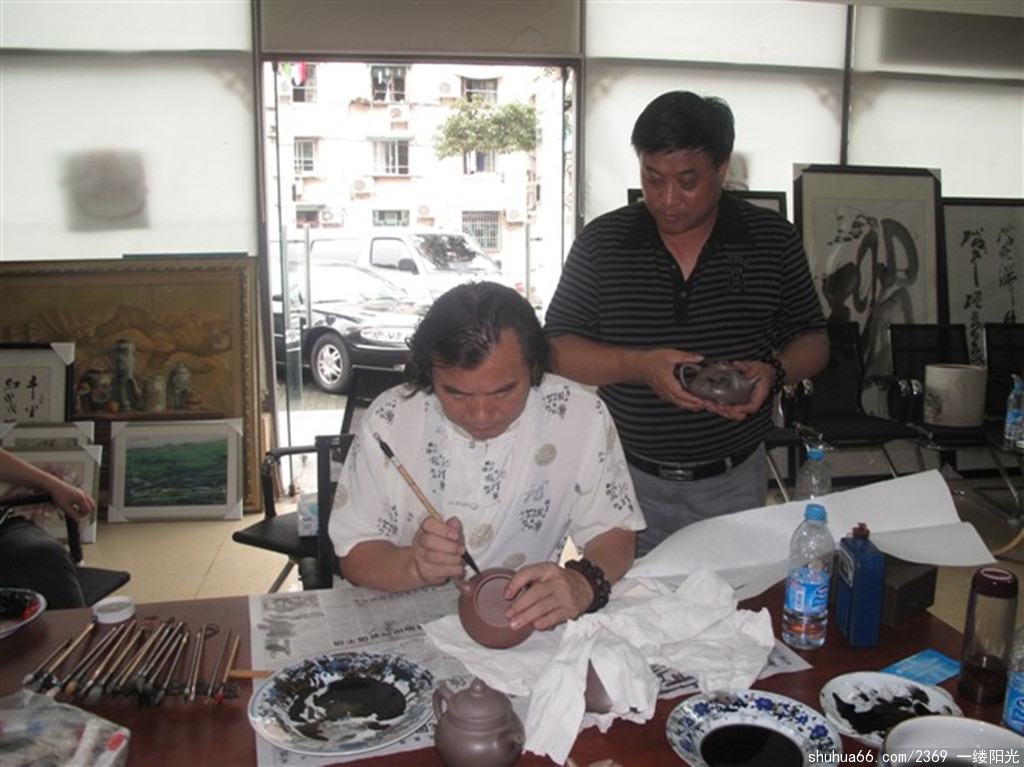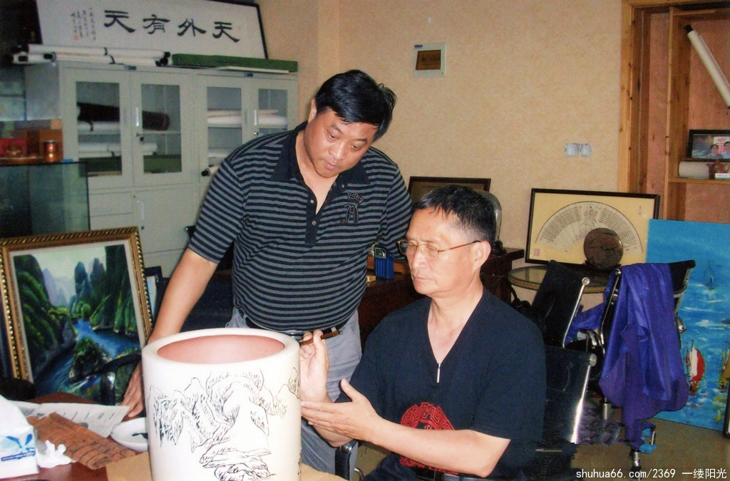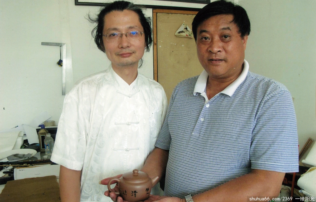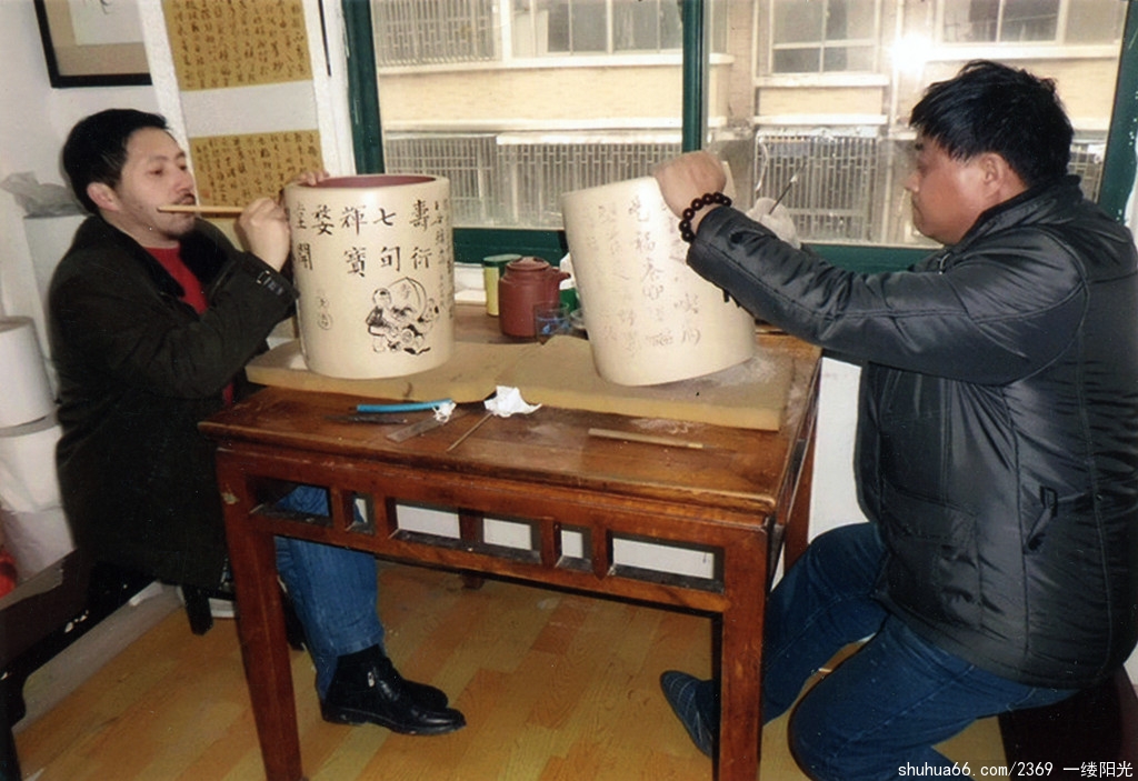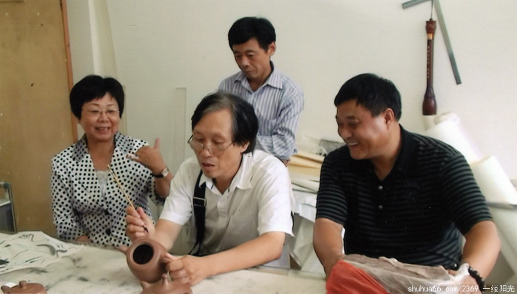 郑斌在宜兴与上海书画大师刘兆麟合作陶刻