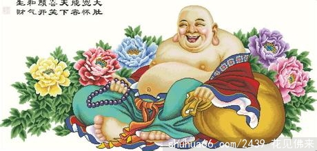 后人以契此为原型,又加上了笑口常开的特征,从而形成矮身大肚、蹙鼻笑口的典型的弥勒佛的形象;也有光头现比丘相,双耳垂肩,脸上满面笑容,笑口大张。身穿袈裟,袒胸露腹,一个按着一个大口袋,一手持着一串佛珠,乐呵呵地看着人们的大肚弥勒佛像。