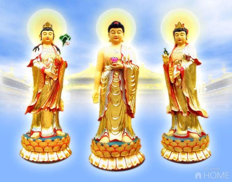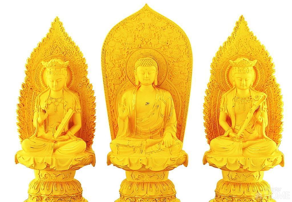 即华严经所指华藏世界之三位圣者。(一)毗卢遮那佛,毗卢遮那意为遍一切处。谓佛之烦恼体净,众德悉备,身土相称,遍一切处,能为色相所作依止,具无边际真实功德,是一切法平等实性;即此自性,又称法身。(二)普贤菩萨,以其居伏道之顶,体性周遍,故称普;断道之后,邻于极圣,故称贤。(三)文殊师利菩萨,文殊师利意为妙德。以其明见佛性,具足法身、般若、解脱三德,不可思议,故称妙德。毗卢遮那佛理智完备,居中位;文殊菩萨主智门,立于毗卢遮那佛之左;普贤菩萨主理门,位于毗卢遮那佛之右。转之则右为智,左为理时,显示理智之涉入胎藏界曼陀罗。