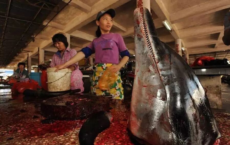 海南翁田菜市场里的一家摊位,鱼腥弥漫,女摊主麻利地挥刀剔肉,围观者络绎不绝;不一会儿,一只海豚的肉身就被买主一抢而空。布满血迹的砧板旁,一颗海豚的头颅孤独地竖立着,皮肤依旧泛着光泽,脸上却呈现出极度痛苦的表情:双眼紧闭,宽吻微张。从颅腔内缓缓流淌出的鲜血,把整个摊位都染上浓重的鲜红。