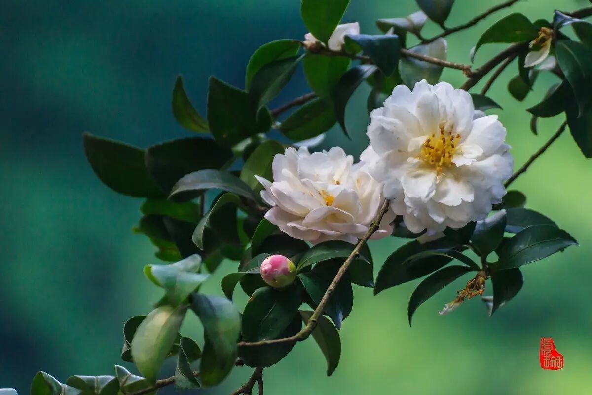 玉峰寺有一数百年茶树花期开花逾两万朵因作