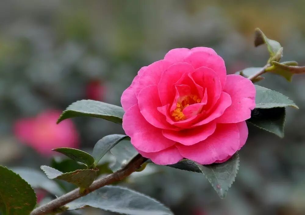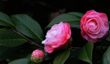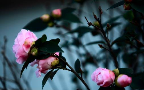 茶梅楚楚笑颜开,疑似仙葩点绛台。