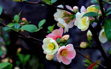 冬去春来香烂漫,风裁雪染品清嘉。与梅共织一天霞。