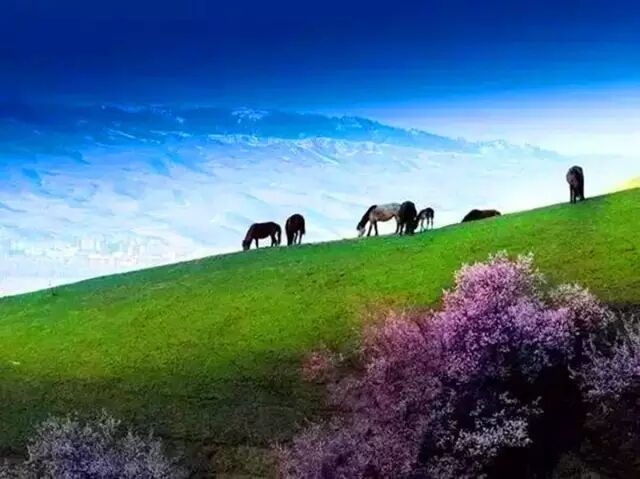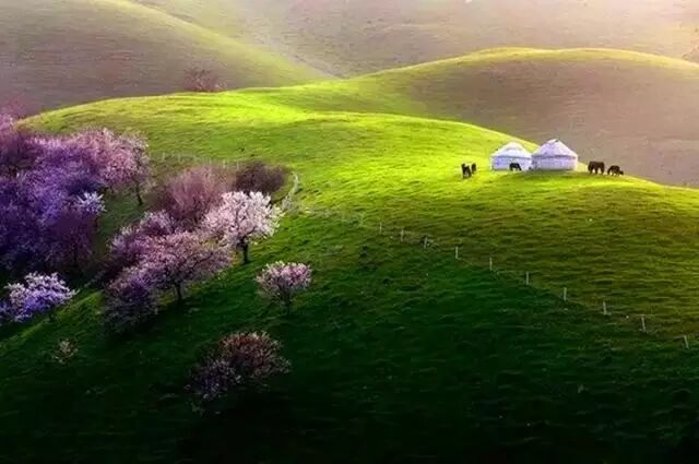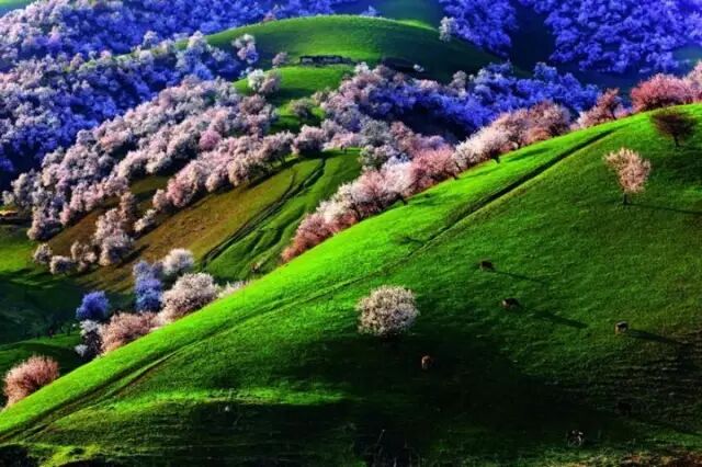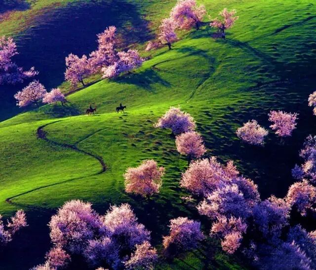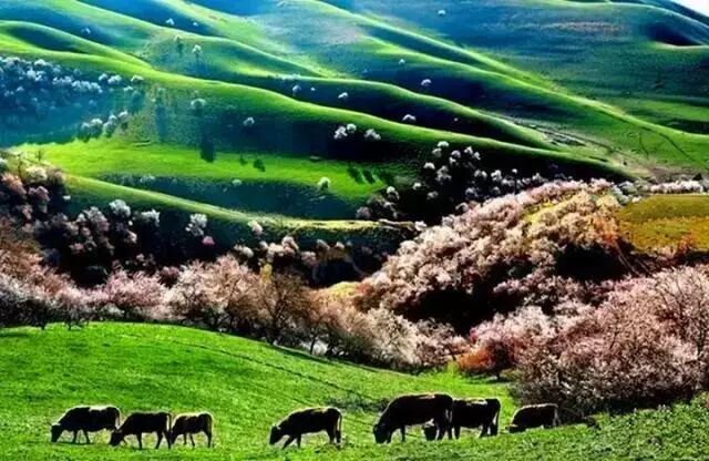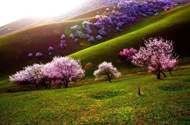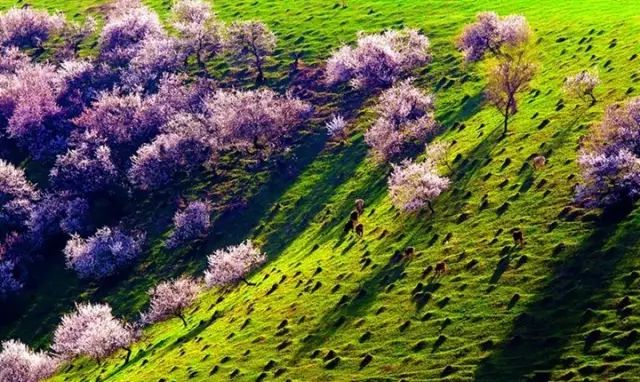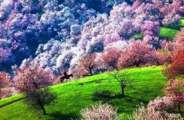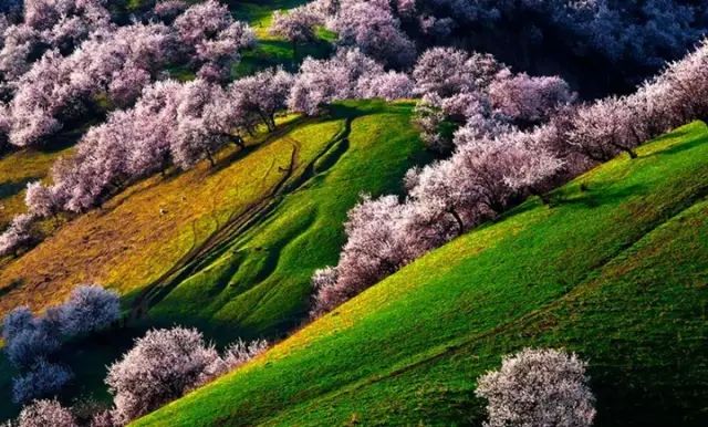 天山,一片中世纪遗留的原始野杏林。3万亩杏花开了,把花海送给行走在春天里的亲友们。