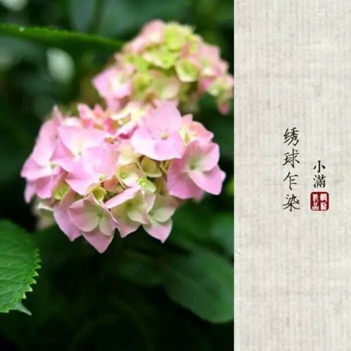 小滿時節,百花開盡,唯石榴花紅火盛開。“五月榴花紅似火”。但是卻又不濃豔。小滿時節,插一支石榴花於青瓷瓶上,不媚豔,卻清麗。無論是韓愈之“石榴照眼”,還是胤礽之“榴火初明,畫屏帶雨”,小滿之花雅。