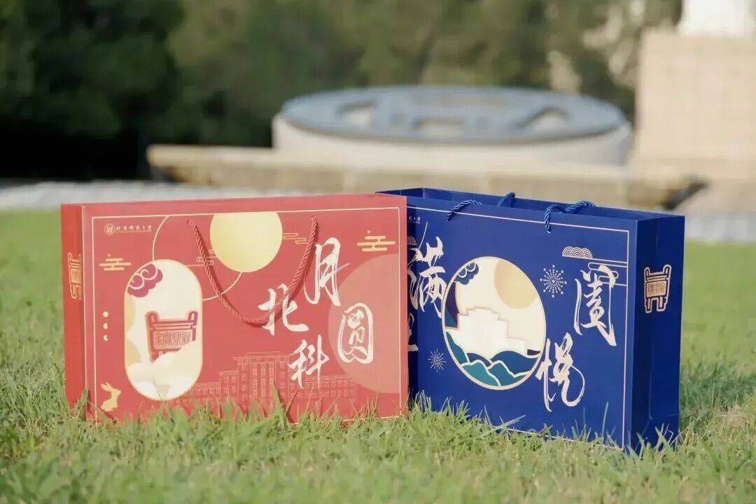学校准备了“月圆北科”和“阖悦满井”两款礼盒。“月圆北科”礼盒以金红色为主调,映照出中秋佳节的团圆暖意,封面的主楼、满月和北科鼎交相辉映。“阖悦满井”礼盒以深蓝色为主调,传递着情意悠长的明月清辉,封面采用镂空设计,融入圆月、云海、主楼的剪影。