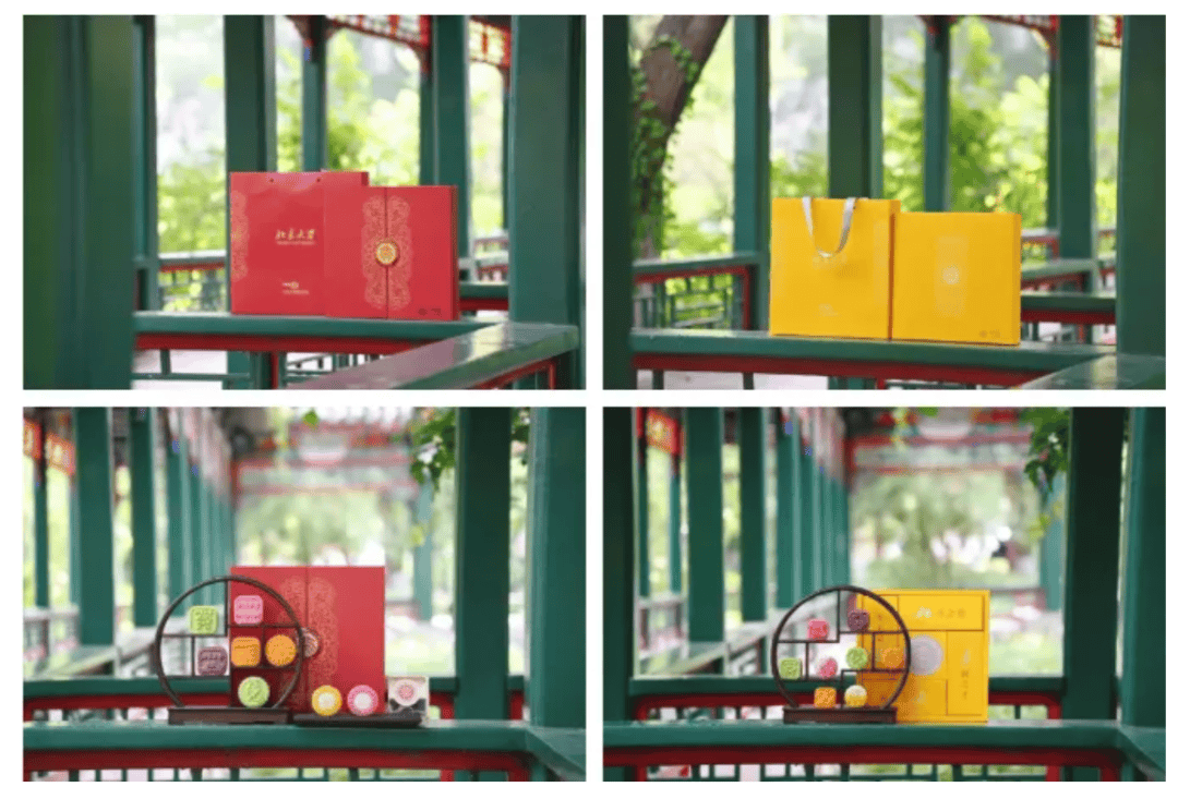 红色礼盒名为“燕园皓月”,黄色礼盒名为“燕园秋月”。每一枚月饼纹印燕园符号:校徽、西门、大学堂、未名湖、博雅塔……每一口都饱含燕园的深情。
