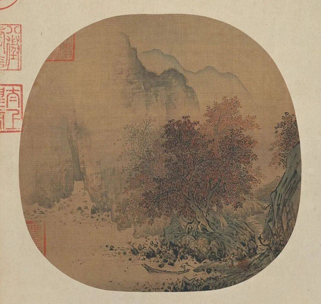 萧照 《秋山红树纨扇》 绢本 69.9cm×42.2cm