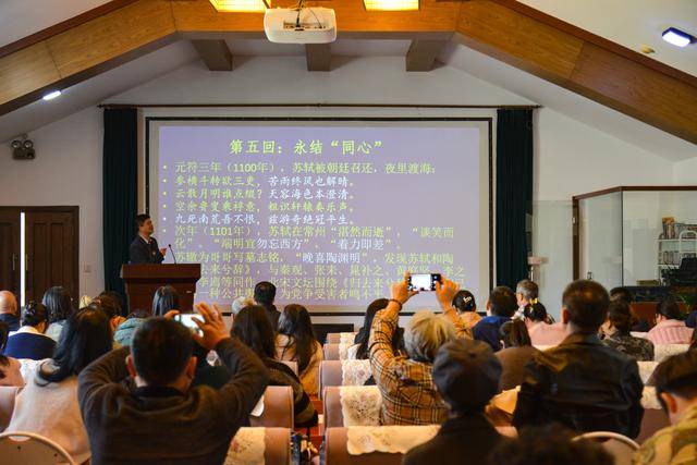 把历史讲“活”,让群众听得进、记得住。在主讲环节,黄修志教授引领听众深入探讨了苏轼与陶渊明之间深刻的精神联结,指出这里的“追爱”,并非世俗意义上的情感,而是苏轼对陶渊明其人其诗所怀抱的一种近乎虔诚的推崇、理解与精神上的追随,是一场跨越六百余年时空的深入“对话”与“共鸣”。苏轼于北宋绍圣四年(1097年)因党争之祸被贬海南儋州,在人生最困顿的时刻,他将陶渊明视为精神导师,不仅在与弟弟苏辙的通信中表达了对陶诗的钟爱,并追和陶诗百余篇,更以“质而实绮,癯而实腴”高度评价陶诗艺术,以“高洁自守,不慕荣利”推崇其人格魅力,乃至发出“我即渊明,渊明即我”的慨叹,成为陶渊明的首席“粉丝”。