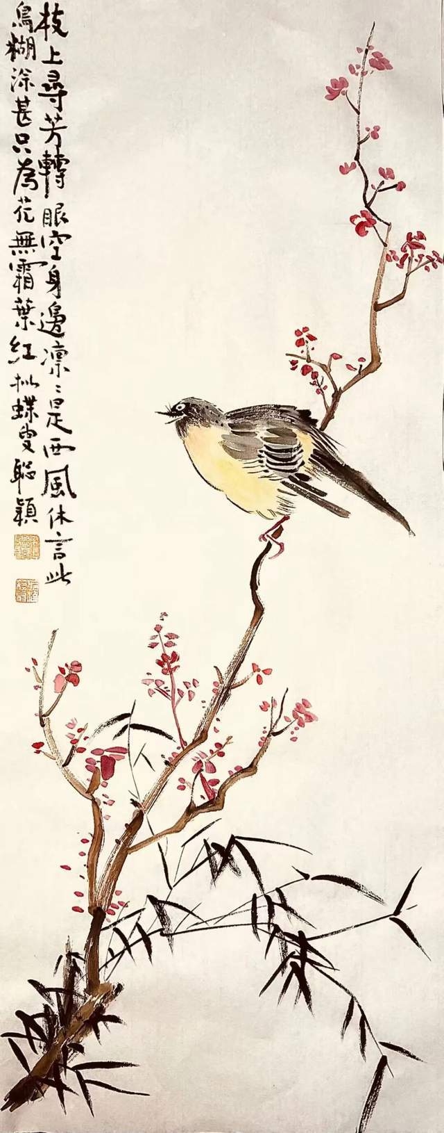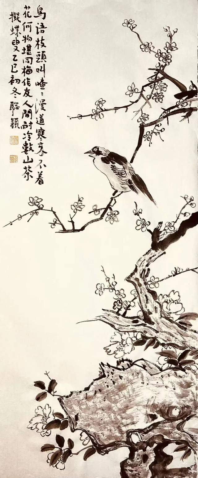 鸟栖枝头叫喳喳,漫道寒来不着花。