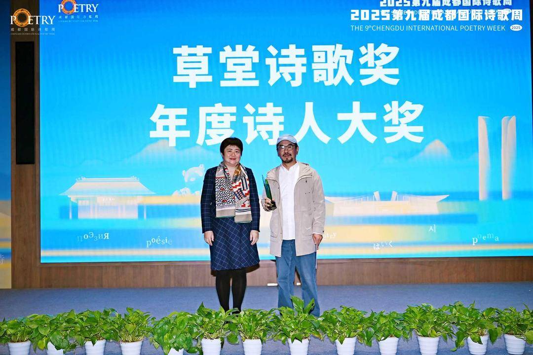 12月3日晚,第九届成都国际诗歌周诗歌之夜暨第八届草堂诗歌奖颁奖仪式在成都举行。沈苇获颁“年度诗人大奖”,张清华获颁“年度诗评家”奖,蒋立波、曹东分获“年度实力诗人”奖,莱明、苏仁聪、赵琳分获“年度青年诗人”奖。来自世界各地的诗人齐聚蓉城,在一场跨越语言、跨越国界的朗诵与致敬中,共同见证第八届草堂诗歌奖的揭晓。诗歌以文字为桥,让成都的千年诗脉在当下再次焕发活力。