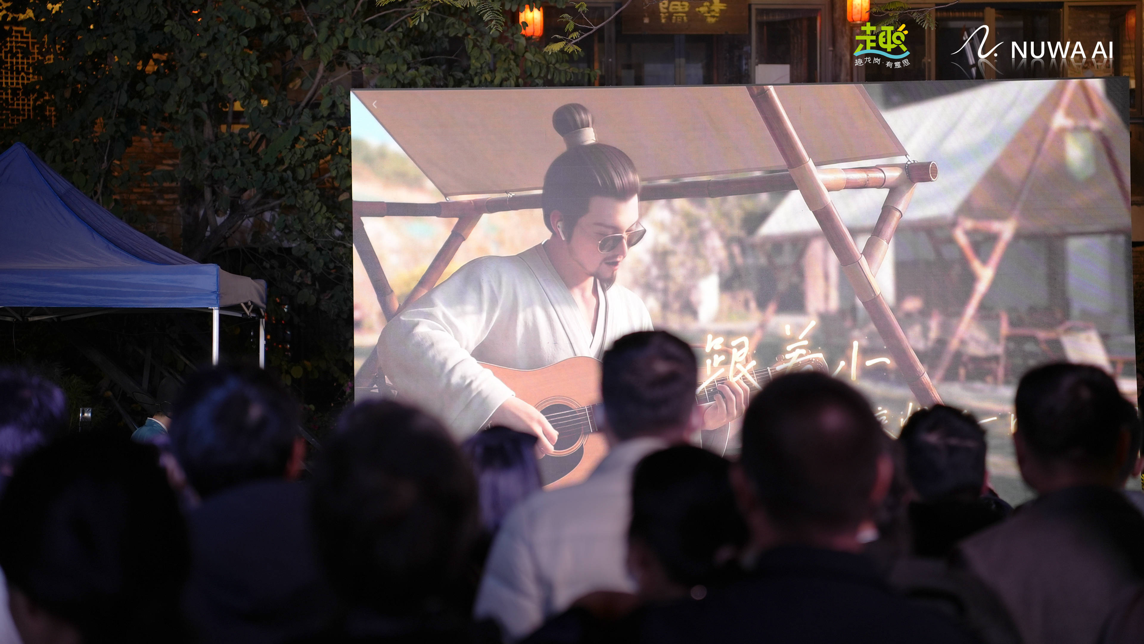 据NuwaAI智能体数字人产品线总裁姜玲玲介绍,项目采用“真人主持+数字人表演”的1+1模式,身着古装服饰的真人主持人负责串联流程、引导游客,数字人则完成真人难以实现的演绎——比如瞬间切换场景、实时生成诗句,两者配合让体验更流畅、更有层次感。